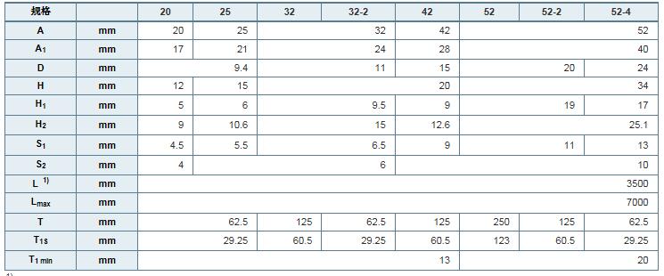 部件号,长度 (mm),T1 / nT x T / T1 (mm)
