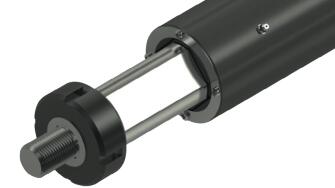 在转矩无法由外部机构来承接的应用场合 (例如,在安装空间受限,或者活塞杆进入工作空间受限的场合),就要采用集成的防转机构。防转机构由在活塞杆上的四个导向平面和在缸头内的导向组成。