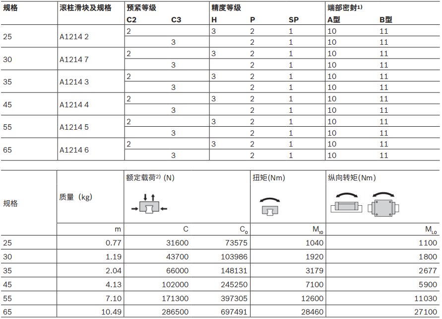 推荐的预紧和精度等级组合